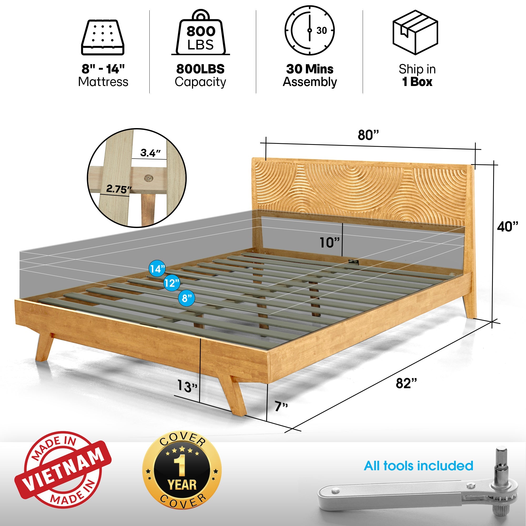 • CNC-carved directly into solid wood and refined by skilled Vietnamese hands, each detail delivers lasting strength, precision, and artisanal depth you can see and feel